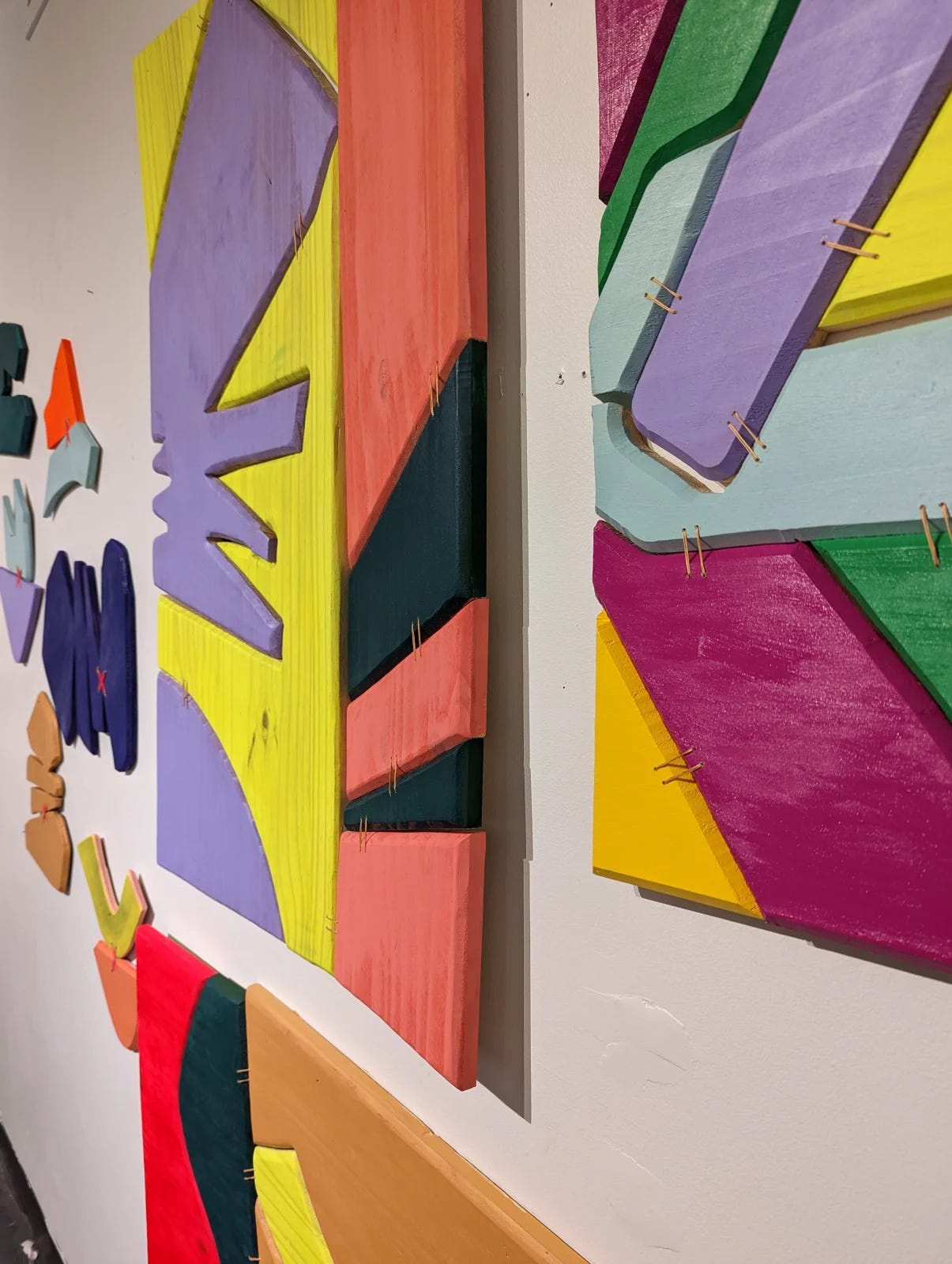 My color choice is very intuitive. Putting colors together is something I just love to do, and I feel like I know what colors I want to be next to each other. Specific colors have a personality and become characters; sometimes they want to be next to someone specific, or go to a color party with all their friends!